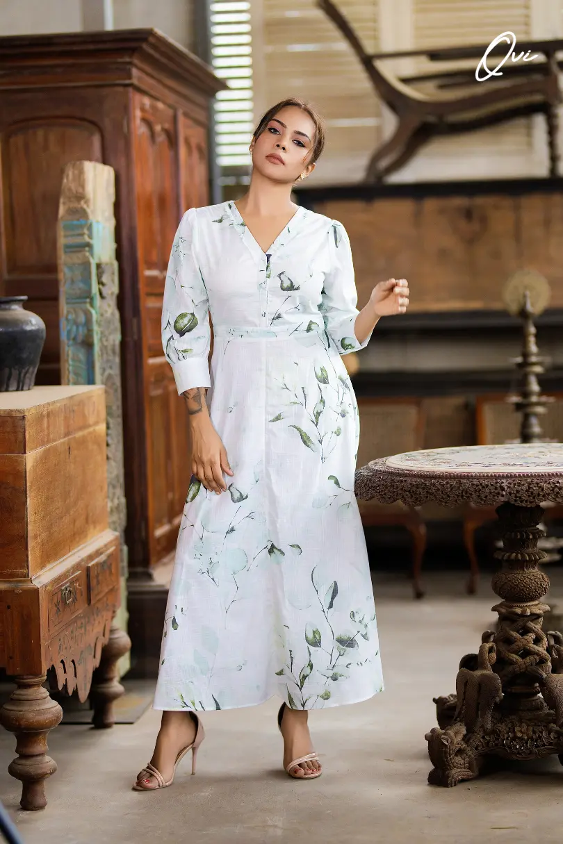 The soft botanical print adds a refreshing charm, making this dress perfect for relaxed daytime wear or polished casual outings. Light, breathable, and effortlessly stylish, OVI 0011 is a versatile wardrobe staple that blends comfort with timeless appeal.